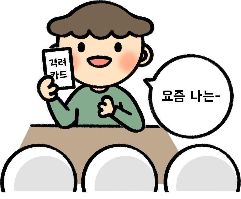 ① 한 주 혹은 한 달 동안의 격려 카드를 선정하여 붙여놓고 모둠원들이 그 말을 연습해보게 한다.