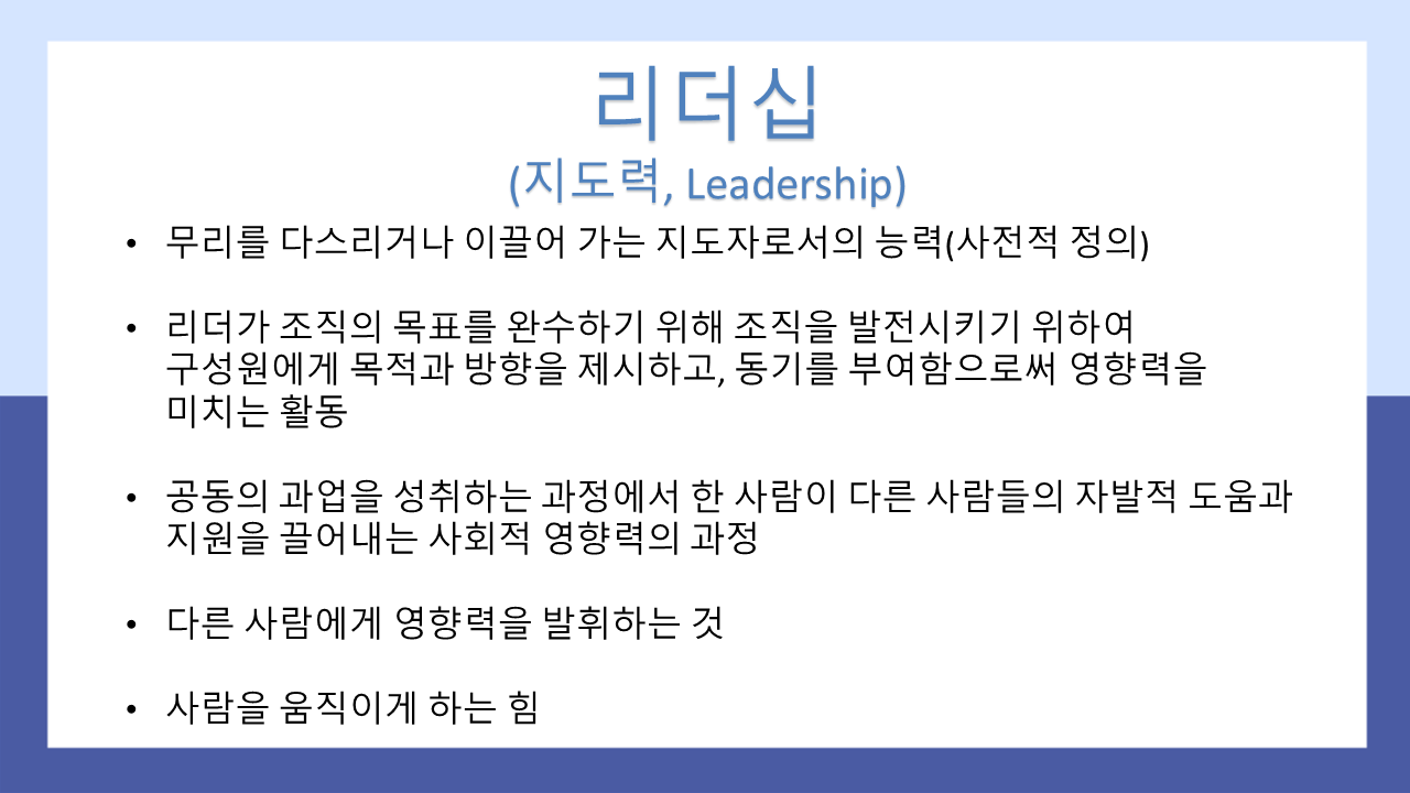 -학교 비전과 목표를 교직원들에게 명료하게 제시하고, 높은 수준의 목표에 도달하기 위해 동기 부여를 잘한다.